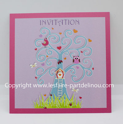 5 cartes invitation anniversaire sur le thème d’un arbre et de ses petits habitants (coccinelles, papillons, oiseaux, hibou) dans les couleurs fushia, orange et rose. Elles sont au format 10×10 cm recto/verso sur papier de 350 g/m2 couché 1/2 mat + 5 enveloppes blanches au format 11×11 cm.
